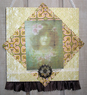 I just wanted to pop in and tell you about a contest I am entered in. It is a monthly contest by Gail Schmidt on her new blog Mind Wide Open. This is the first of many wonderful contests! I found out about it the night before I left for Nashville but I managed to make a small wall hanging to enter. I definitely made it more simple than the others. I wanted the image to be the main focus. So not a lot of bells and whistles!